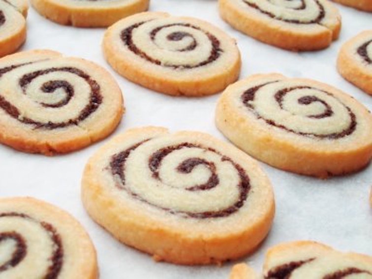Avvolgerlo delicatamente nello stessa carta, quindi conservarlo in frigo per almeno due ore (o anche tutta la notte). Tirare fuori l'impasto e sistemare il rotolo su di un tagliere, quindi tagliarlo a fette dello spessore desiderato e adagiare su una placca da forno rivestita di carta forno o imburrata. Cuocere per 10-12 minuti in forno caldo a 180°C.